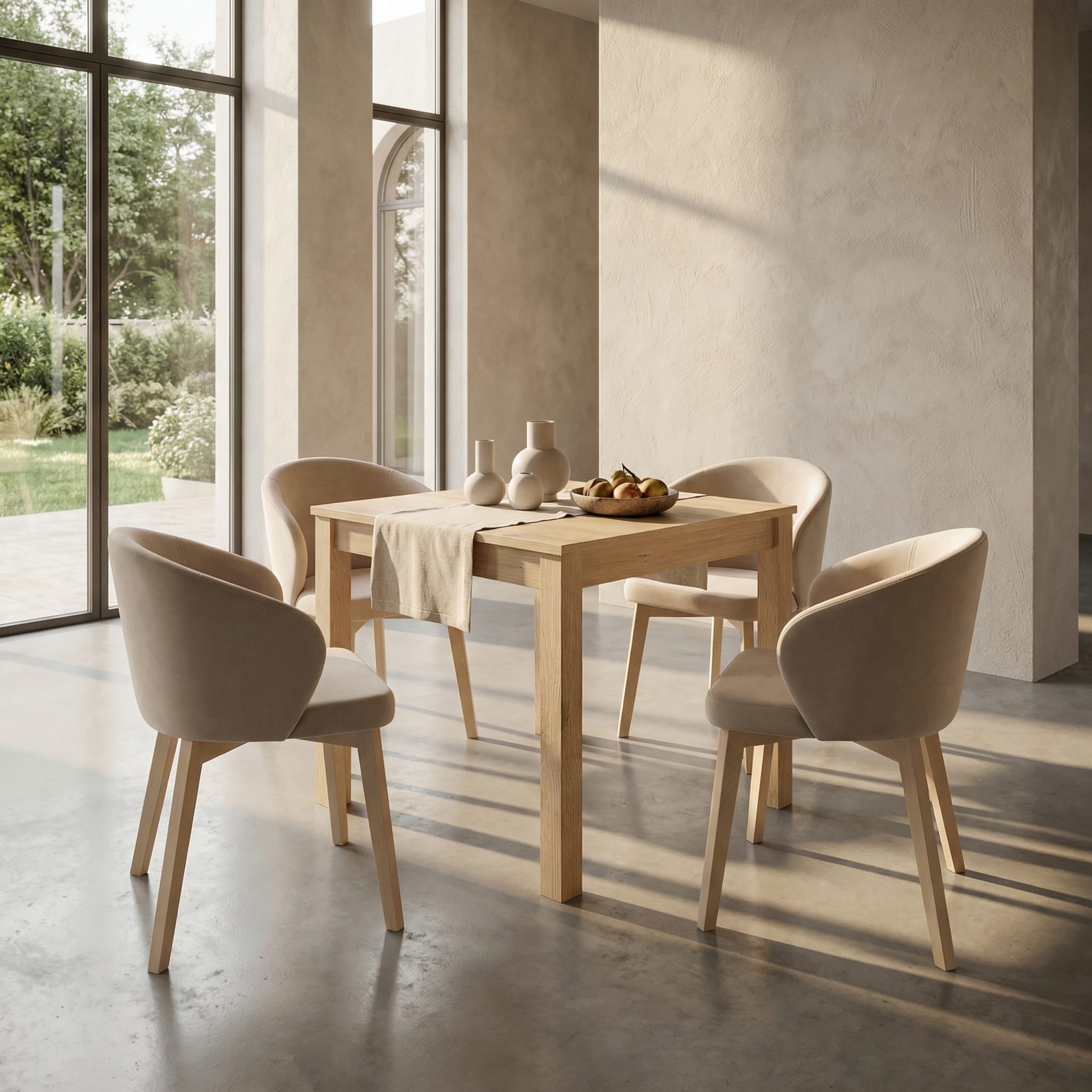 Połączenie naturalnego drewna bukowego z tapicerowanym siedziskiem tworzy ponadczasowy duet, który dodaje wnętrzu lekkości i elegancji.