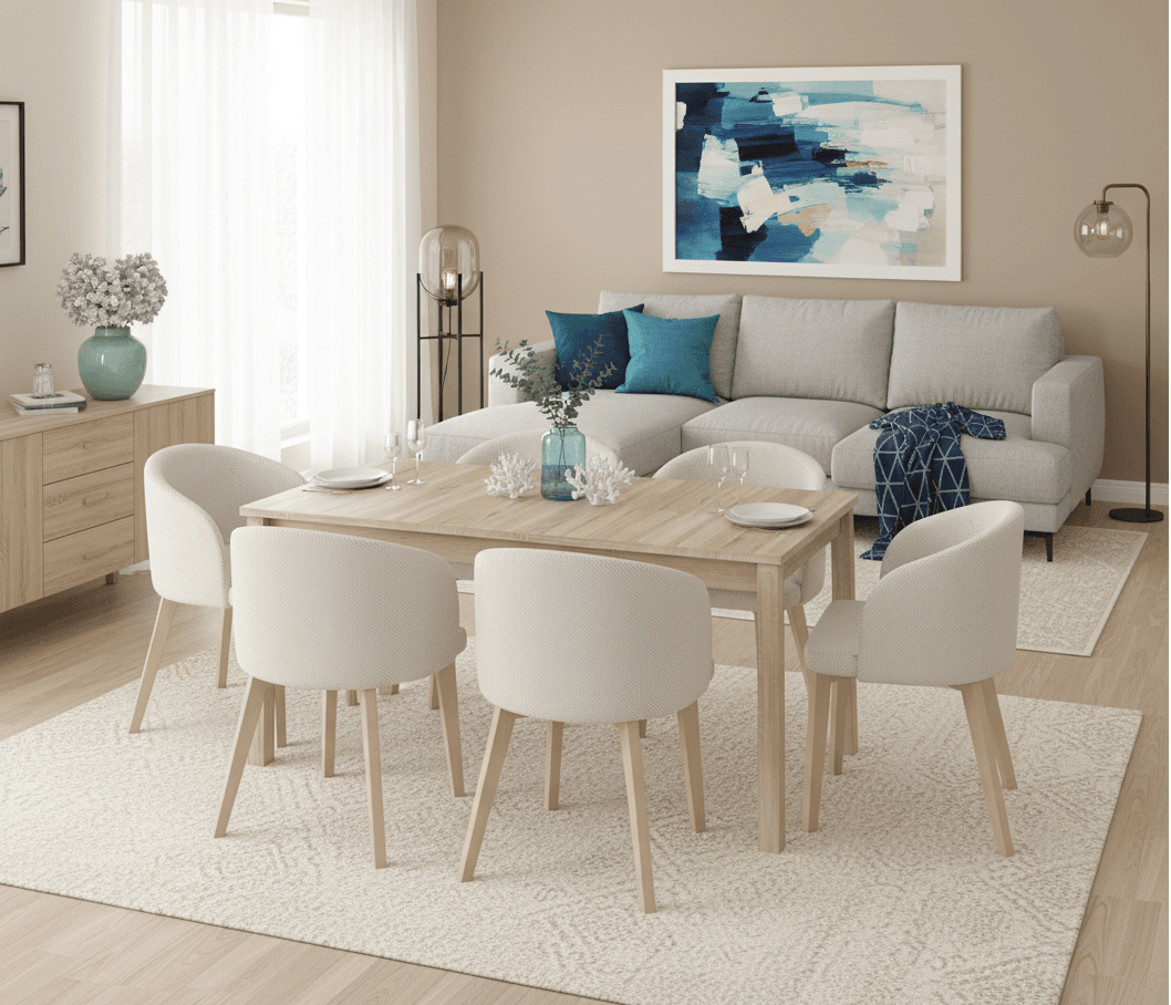 Dzięki możliwości wyboru koloru stół można idealnie dopasować do każdego wnętrza i stylu aranżacji zarówno nowoczesnego, skandynawskiego, klasycznego czy minimalistycznego. Prosta forma i staranne wykończenie sprawiają, że stół świetnie współgra zarówno z krzesłami tapicerowanymi, jak i drewnianymi, tworząc spójną i elegancką przestrzeń.