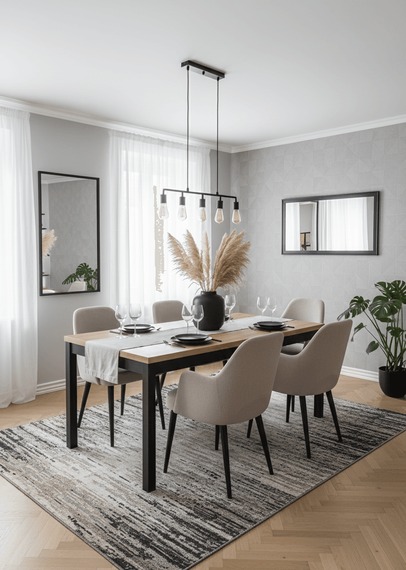 Połączenie blatu w kolorze dąb artisan z czarnymi nogami nadaje stołowi wyrazistego charakteru. Taka kolorystyka harmonizuje zarówno z nowoczesnymi i loftowymi aranżacjami, jak i z przytulnymi, skandynawskimi wnętrzami. Prosta forma i dopracowane detale sprawiają, że stół świetnie prezentuje się z różnymi typami krzeseł zarówno z tapicerowanymi, drewnianymi czy metalowymi.