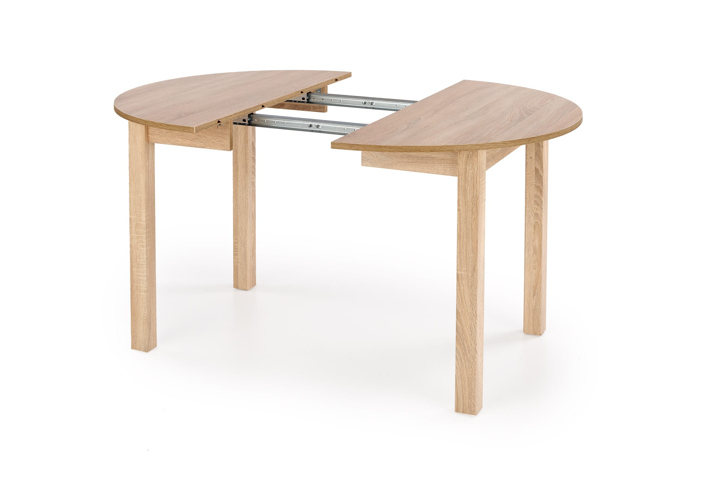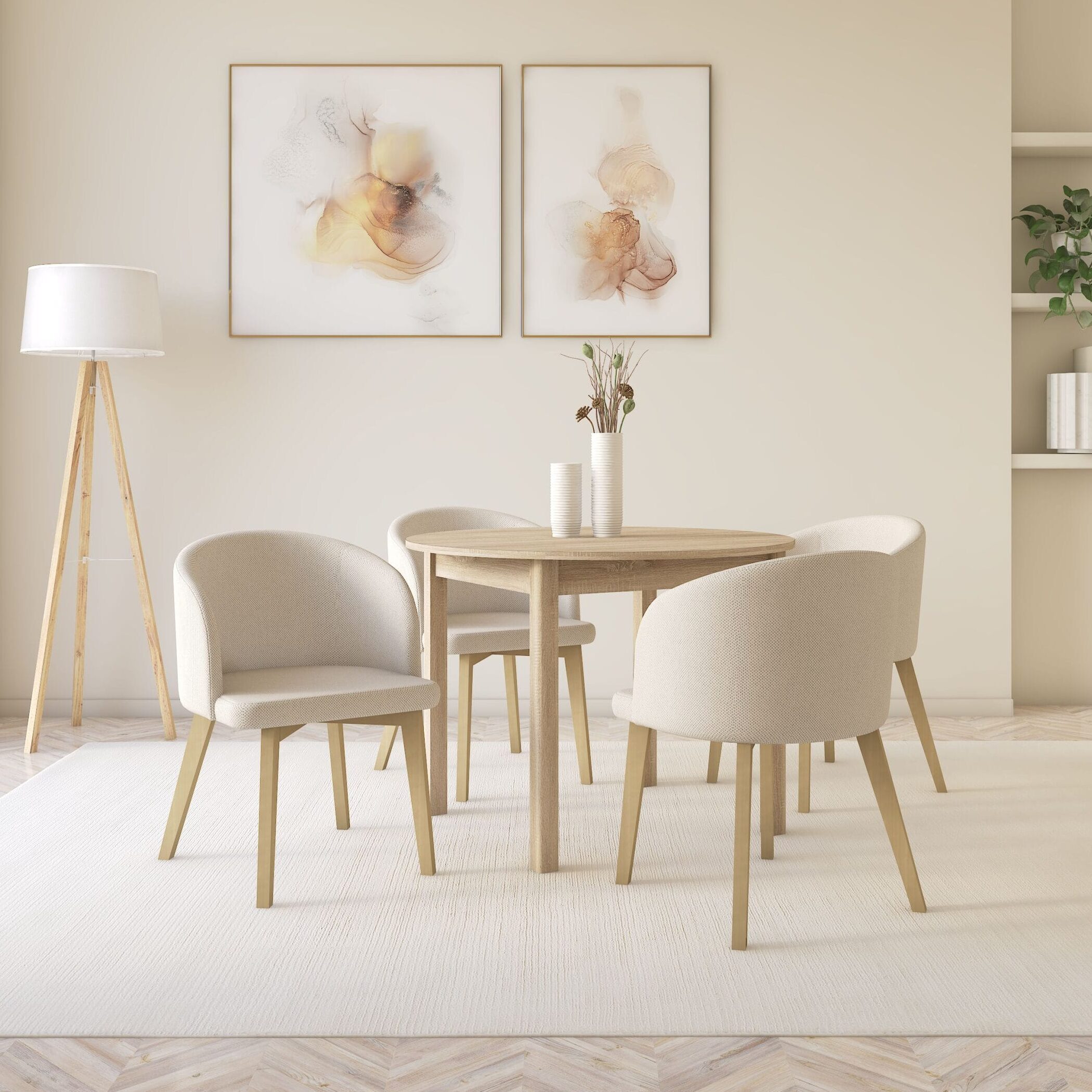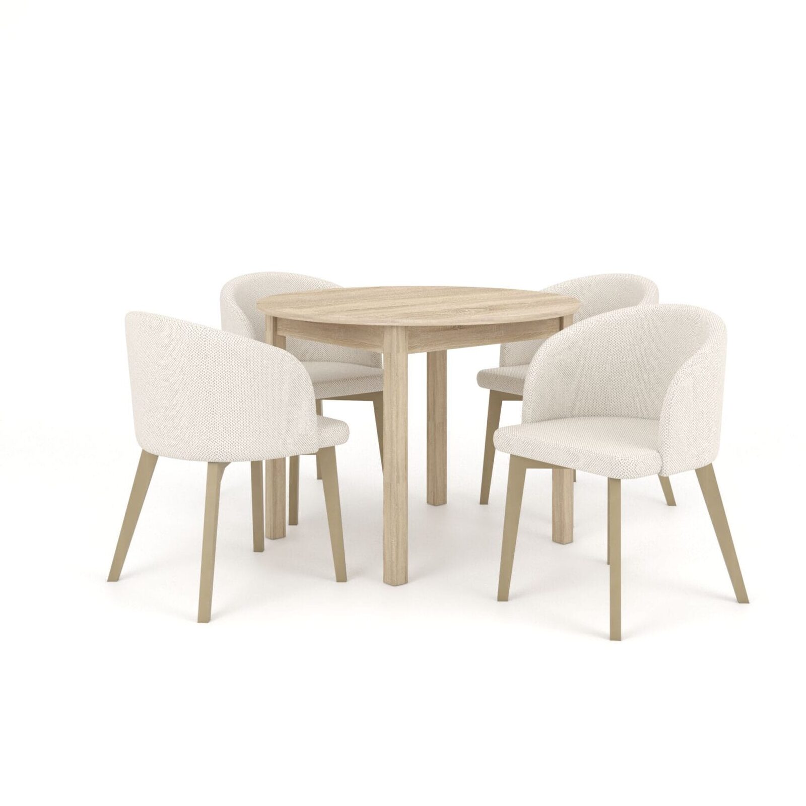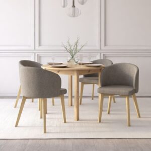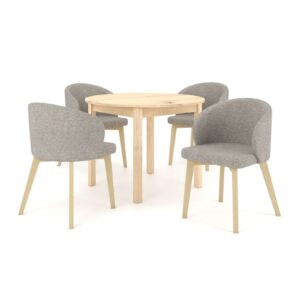 Praktyczny, okrągły stół ST44M z funkcją rozkładania w kolorze dąb sonoma wnosi do wnętrza lekkość i ciepło, jednocześnie zachowując elegancki charakter. Prosta forma stołu doskonale wpisuje się w aranżacje nowoczesne, skandynawskie oraz minimalistyczne. Całość dopełniają cztery tapicerowane, kubełkowe krzesła FLAVIO 2, które podkreślają elegancki design łącząc komfort z estetyką. Zestaw tworzy spójną, stylową całość, która zachwyca ponadczasowym wyglądem i funkcjonalnością.