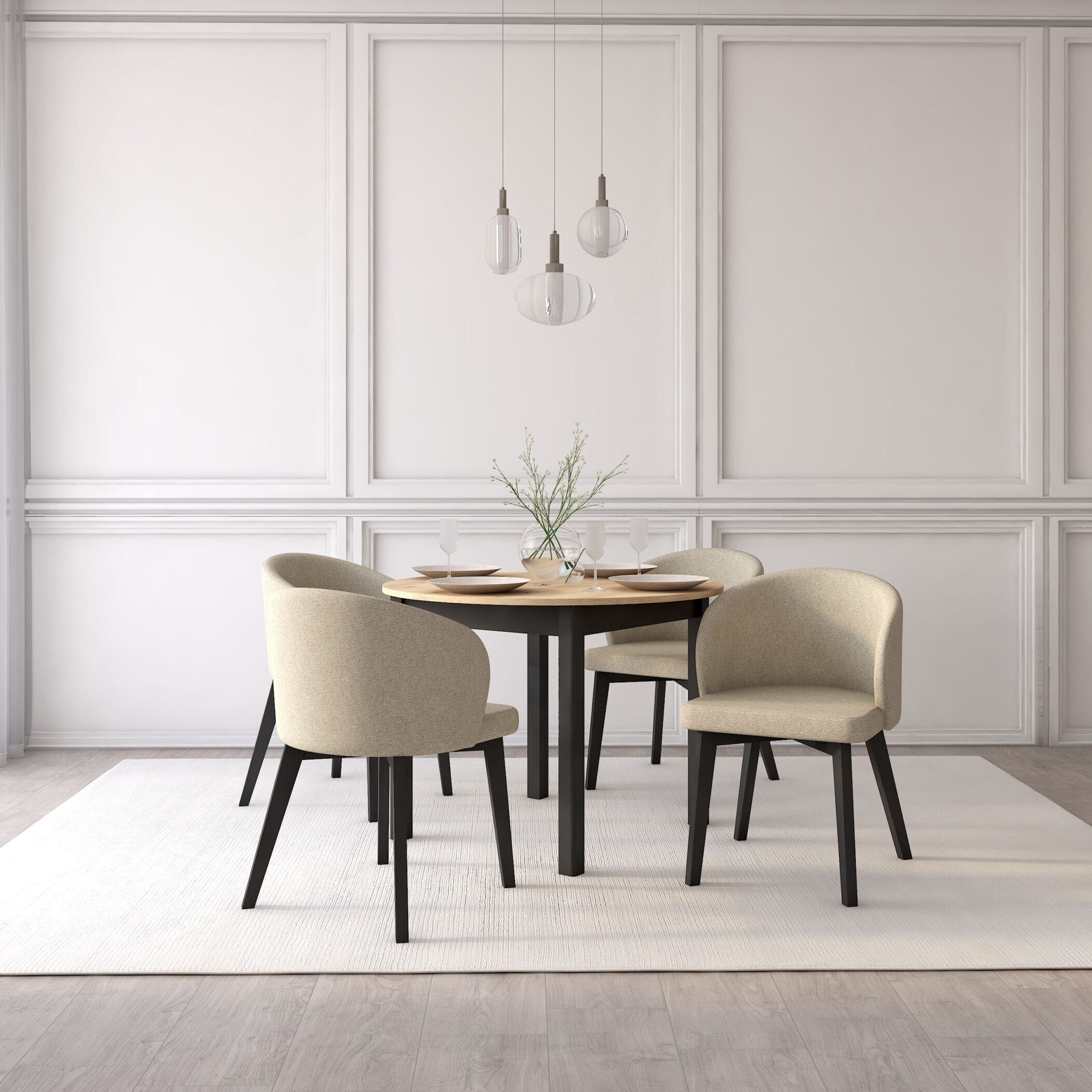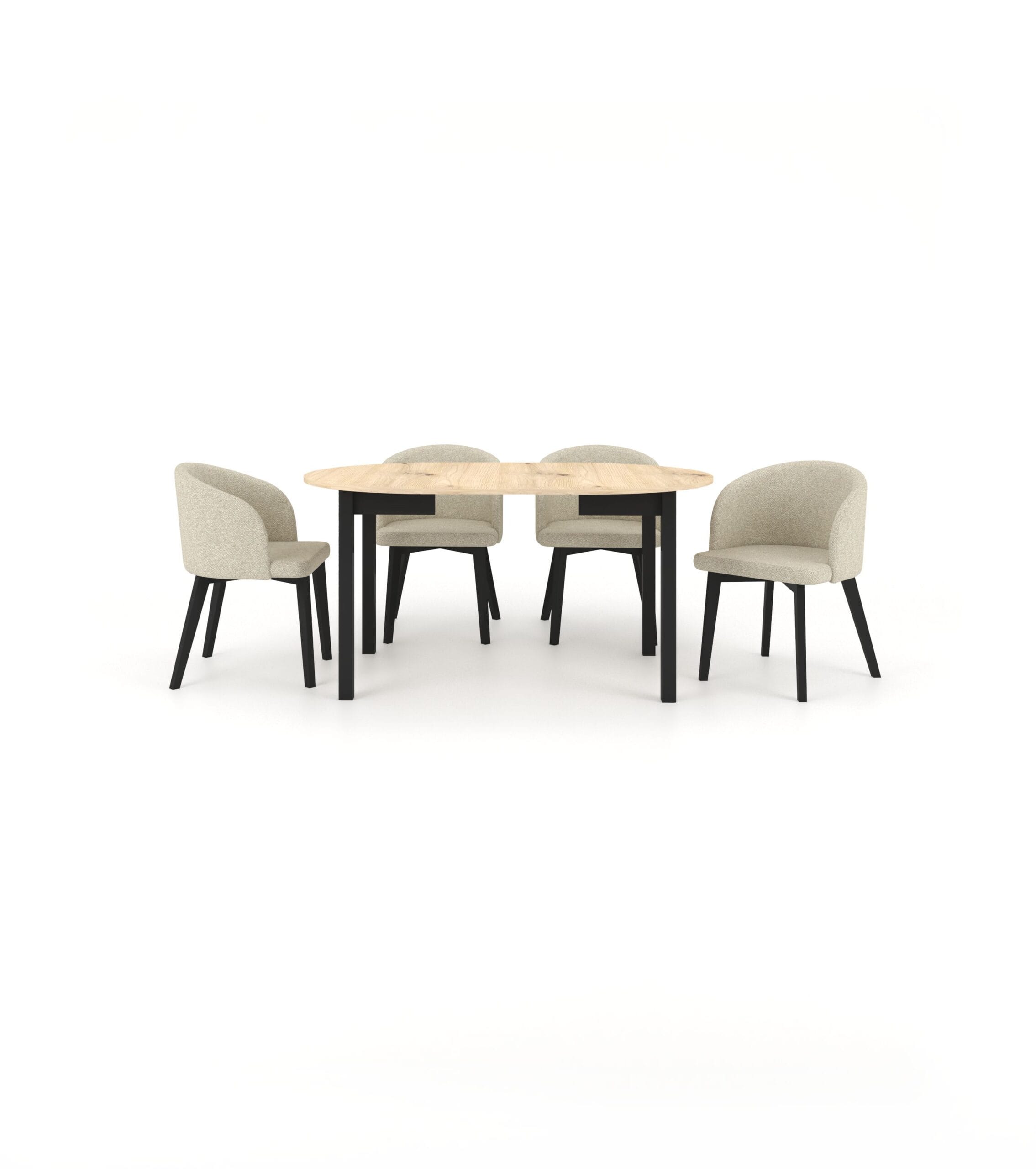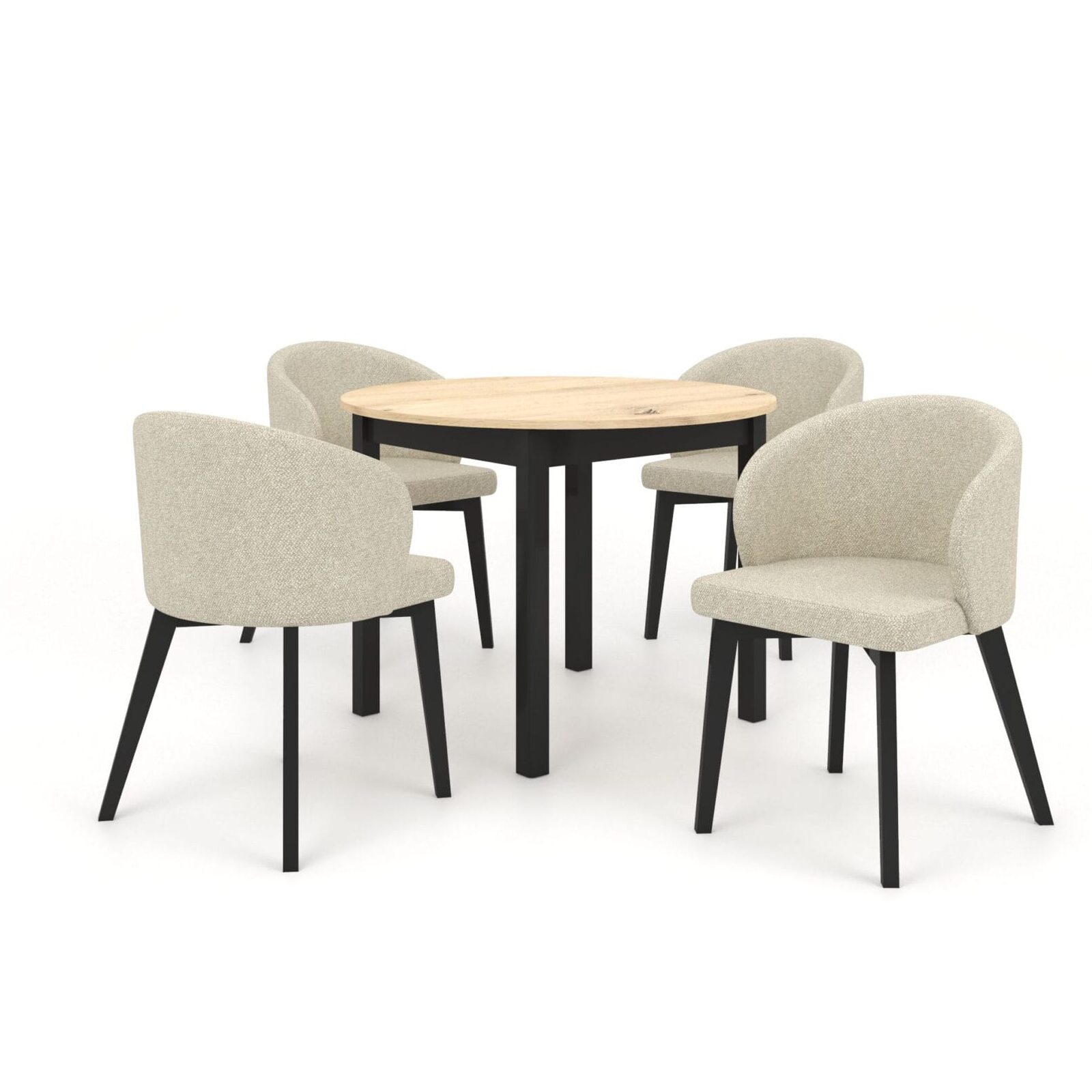 Stół okrągły, rozkładany 102×102-142cm i cztery tapicerowane krzesła FLAVIO 5