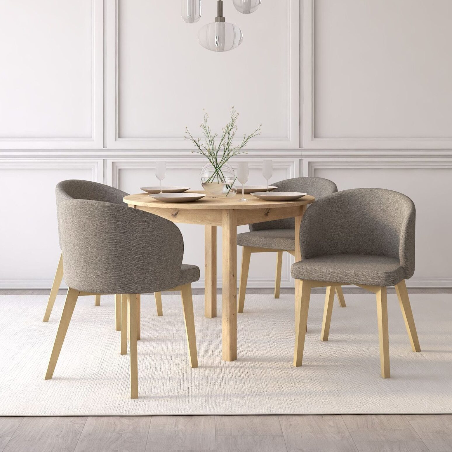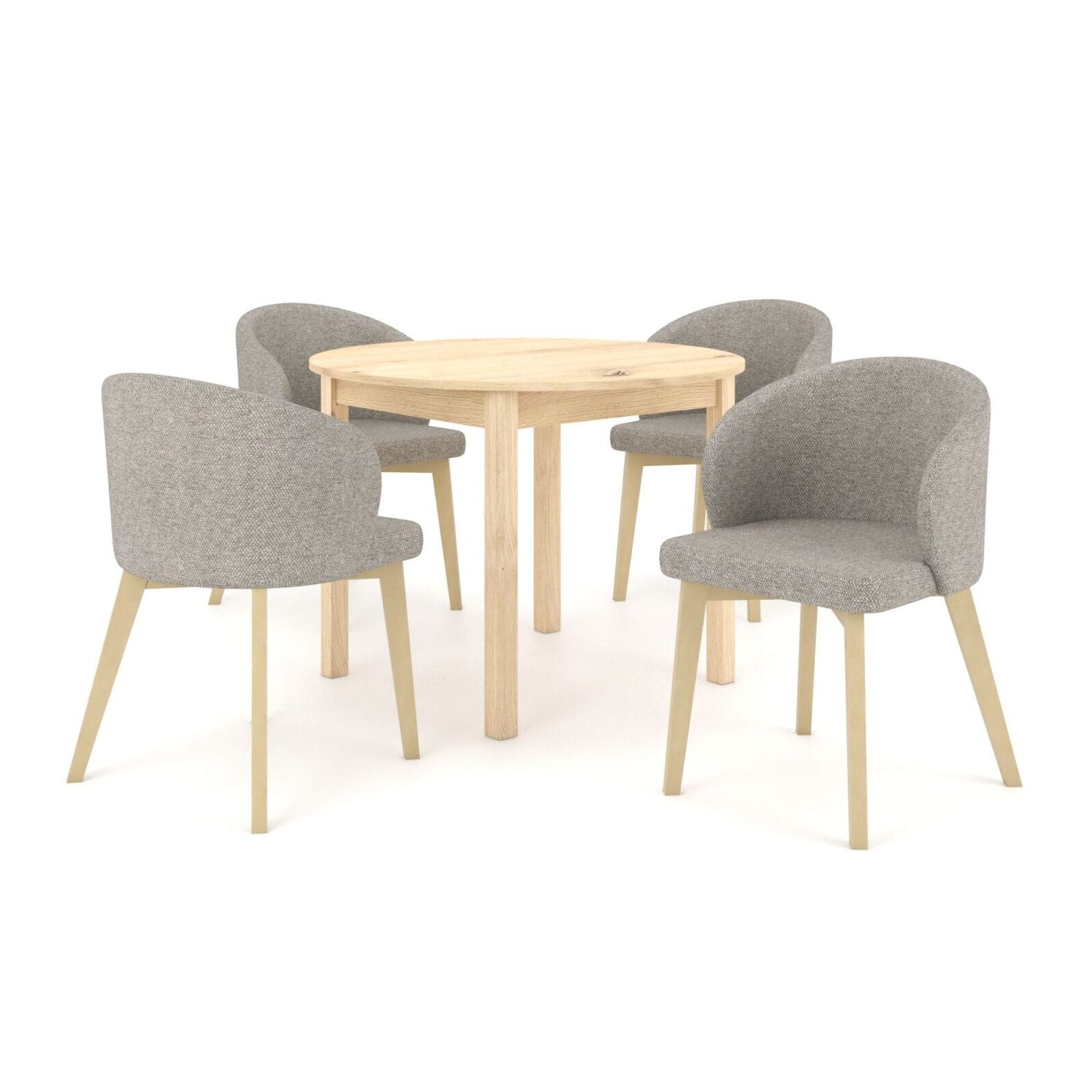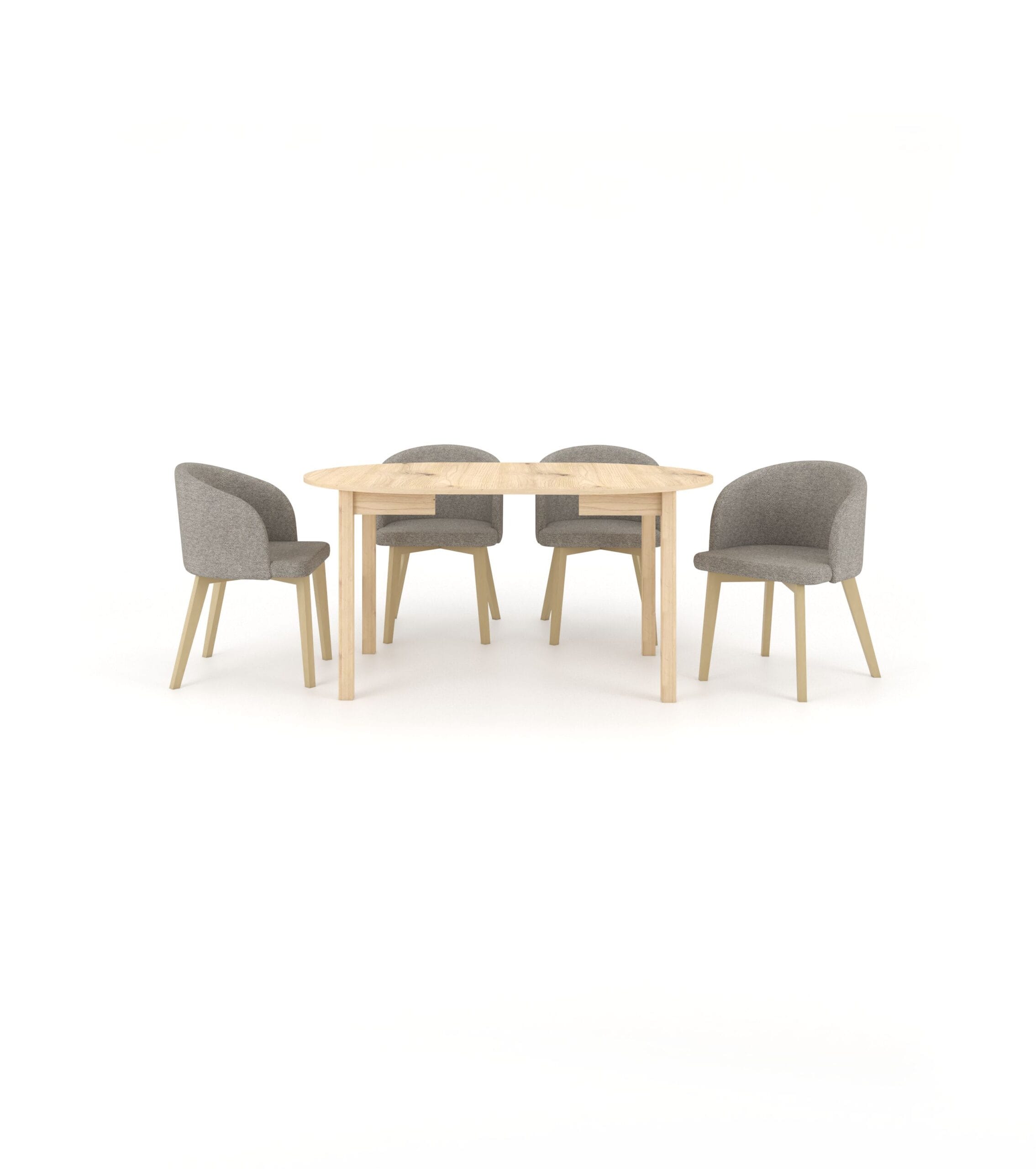 Nowoczesny, okrągły stół z funkcją rozkładania to propozycja dla osób, które szukają praktycznych rozwiązań i cenią dobry styl. Stół w kolorze dąb artisan wnosi do wnętrza ciepło i harmonię, tworząc przyjazną przestrzeń do codziennych spotkań. Idealnie wpisuje się w styl skandynawski, nowoczesny oraz minimalistyczny, dodając wnętrzu elegancji. Komplet uzupełniają kubełkowe, tapicerowane krzesła, które zachwycają designem i komfortem użytkowania. Pięknie komponują się ze stołem stanowiąc spójny, elegancki zestaw, który odnajdzie się zarówno w jadalni, salonie czy kuchni. Razem tworzą spójne połączenie, które wprowadza do Twojego domu nie tylko funkcjonalność, ale także styl i przytulność, stając się miejscem codziennych chwil i spotkań.