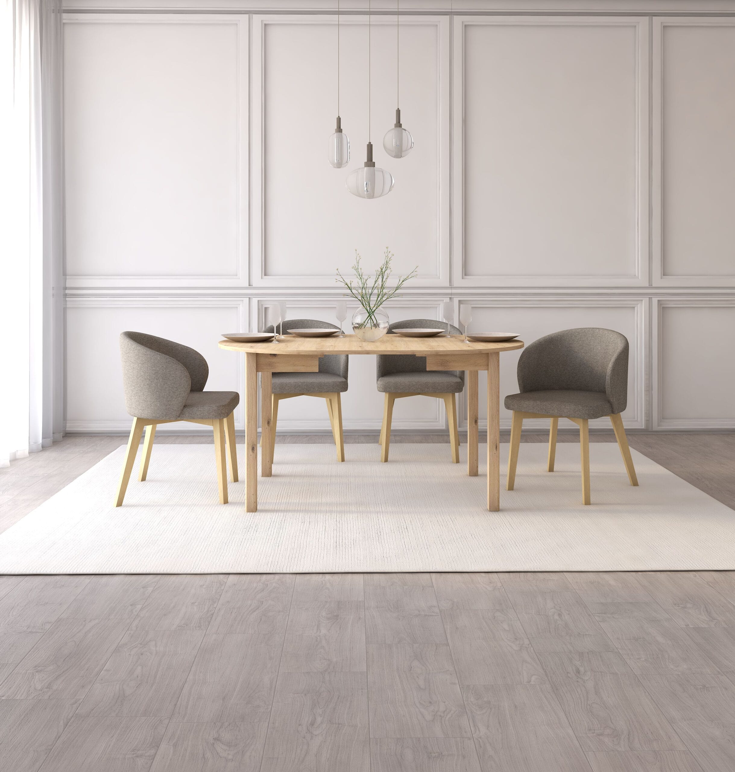 Stół okrągły, rozkładany 102×102-142cm i cztery tapicerowane krzesła FLAVIO 5